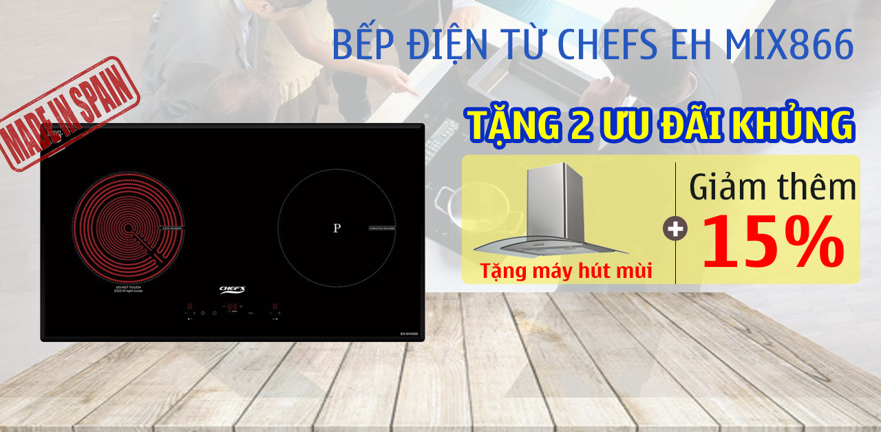 Đã từng là một mẫu bếp hỗn hợp đáng mua nhất của năm 2014 của hãng Chefs tại thị trường Việt Nam, nhưng với sự ra đời của các mẫu bếp inverter thì chiếc bếp điện từ Chefs EH MIX866 đã mất đi vị thế của mình. Tuy vậy trong tháng 10/2018 thương hiệu Chefs đã áp dụng một chương trình khuyến mãi vô cùng hấp dẫn dành cho khách hàng khi mua dòng sản phẩm bếp được nhập khẩu trực tiếp Tây Ban Nha. Đó cũng là lý do mà Vân Anh muốn cùng bạn tìm hiểu xem tại thời điểm hiện tại liệu có mua bếp điện từ Chefs EH MIX866 với ưu đãi hấp dẫn chưa từng có đó không?